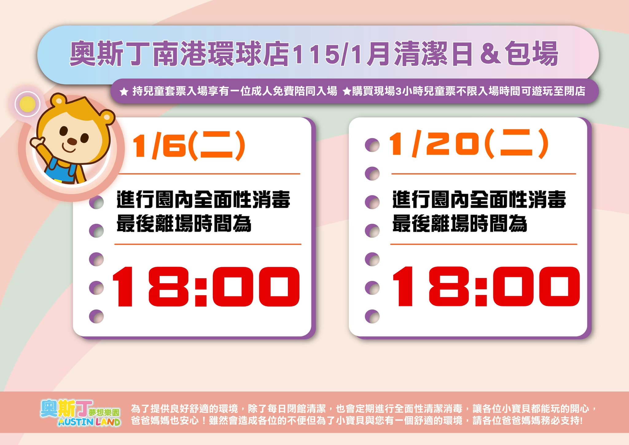 【奧斯丁1月清潔&包場日】