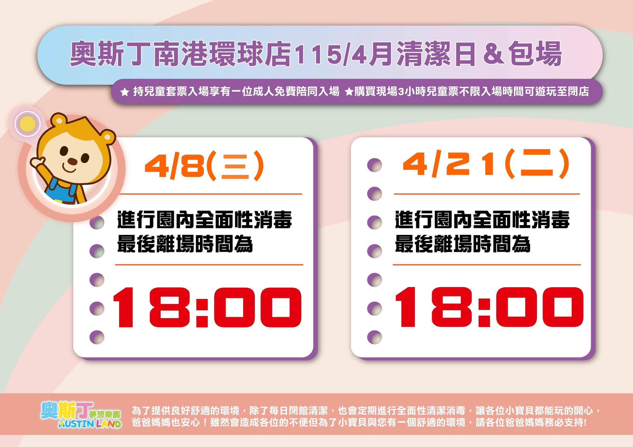 【奧斯丁4月清潔&包場日】